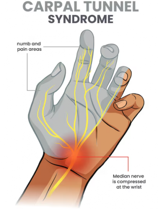 • Pain: Often in the wrist, palm, or forearm, which may worsen during sleep or repetitive movements.