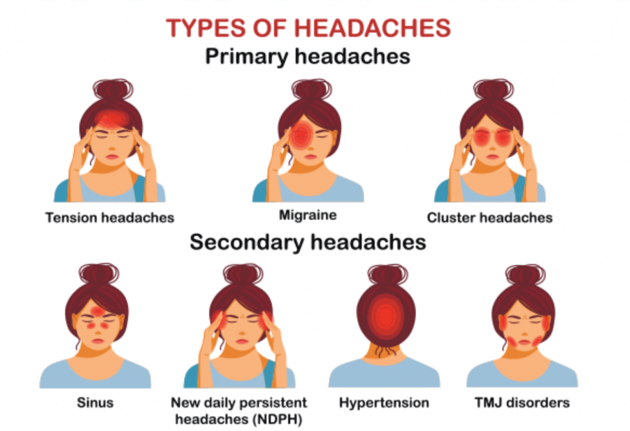 There are various types of headaches, categorised primarily into primary and secondary headaches: